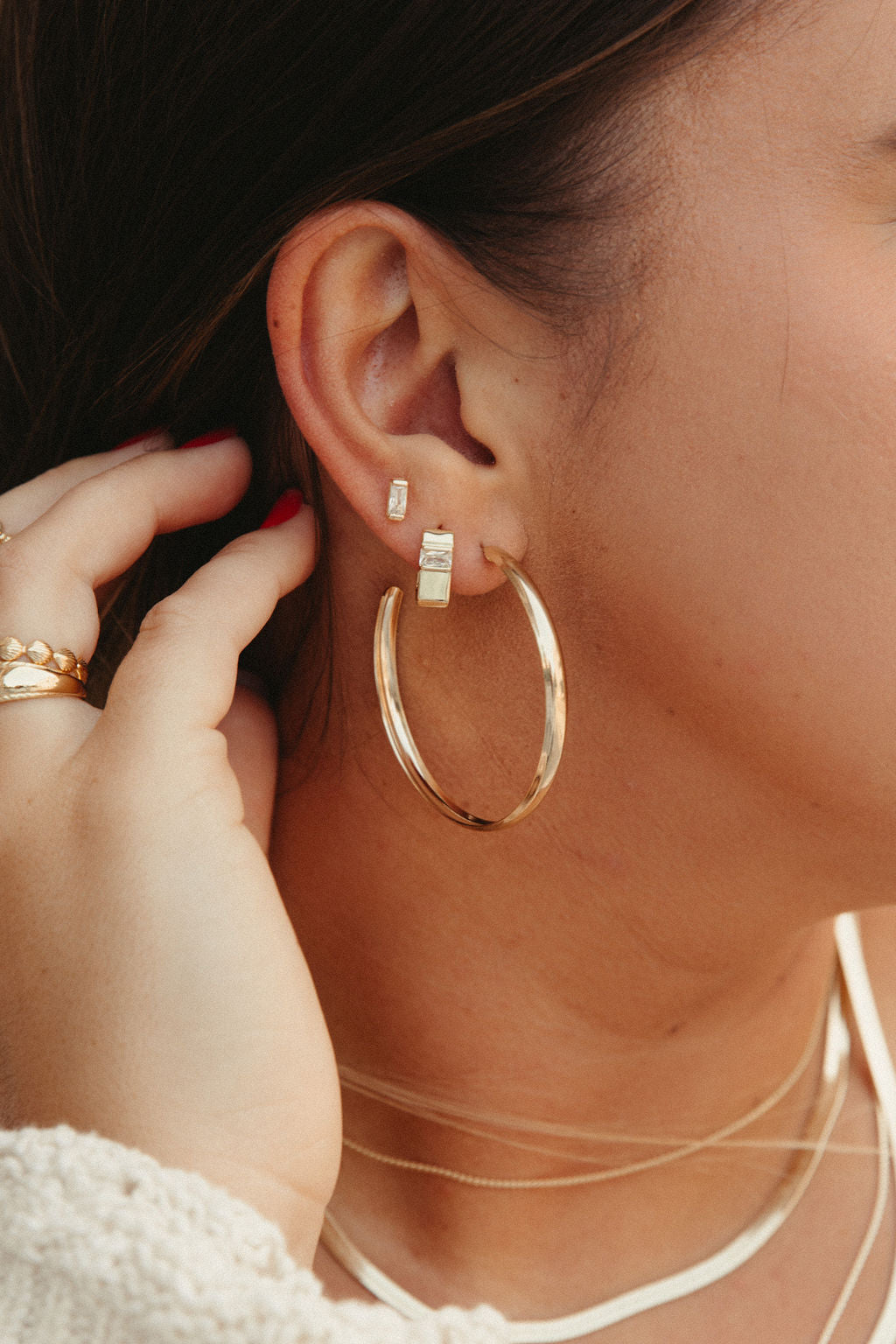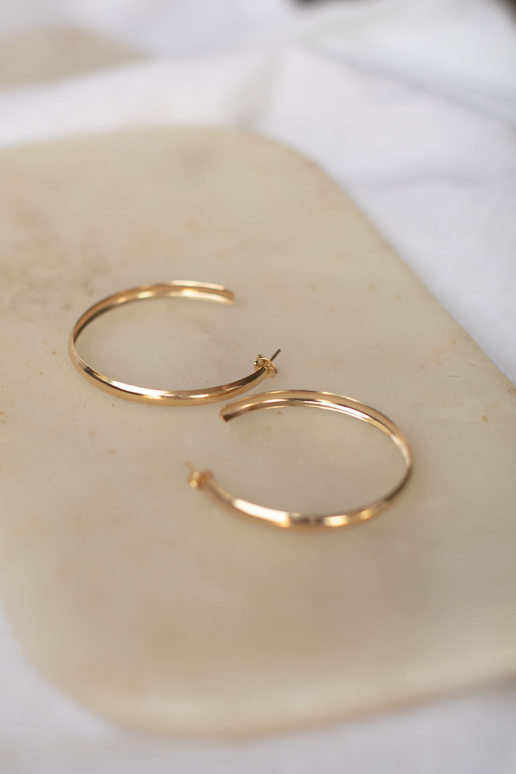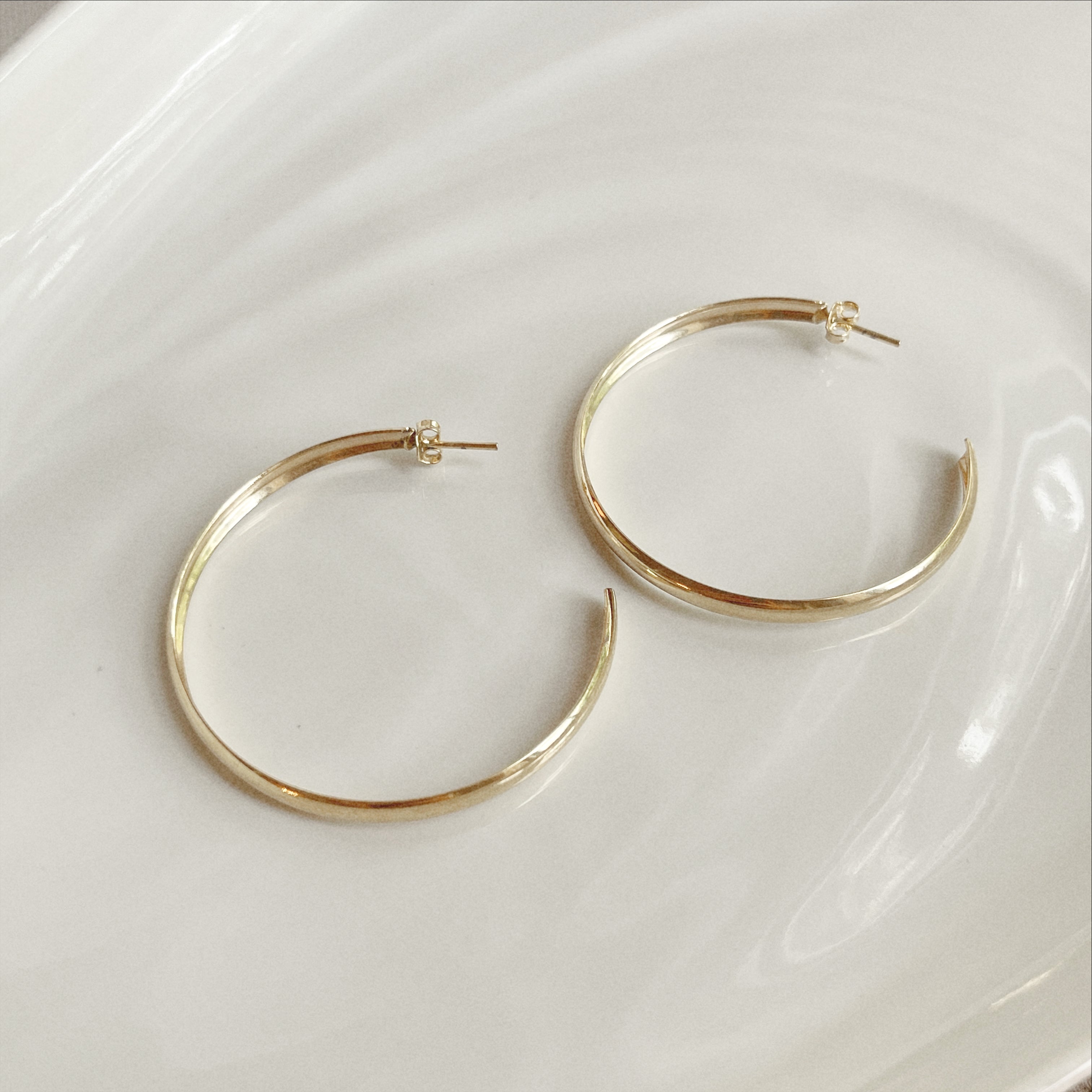 No jewelry collection is complete without a classic pair of big hoops! These hoops have a flattened shape for maximum visibility and shine. They go with everything from your favorite t-shirt to your best blazer.